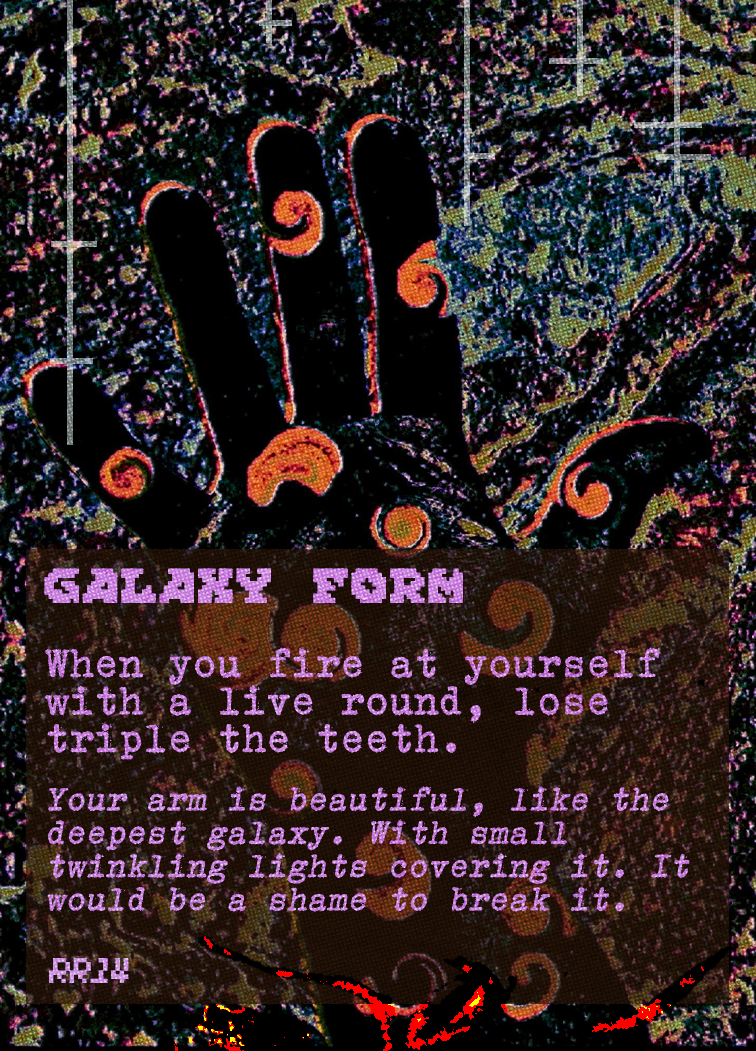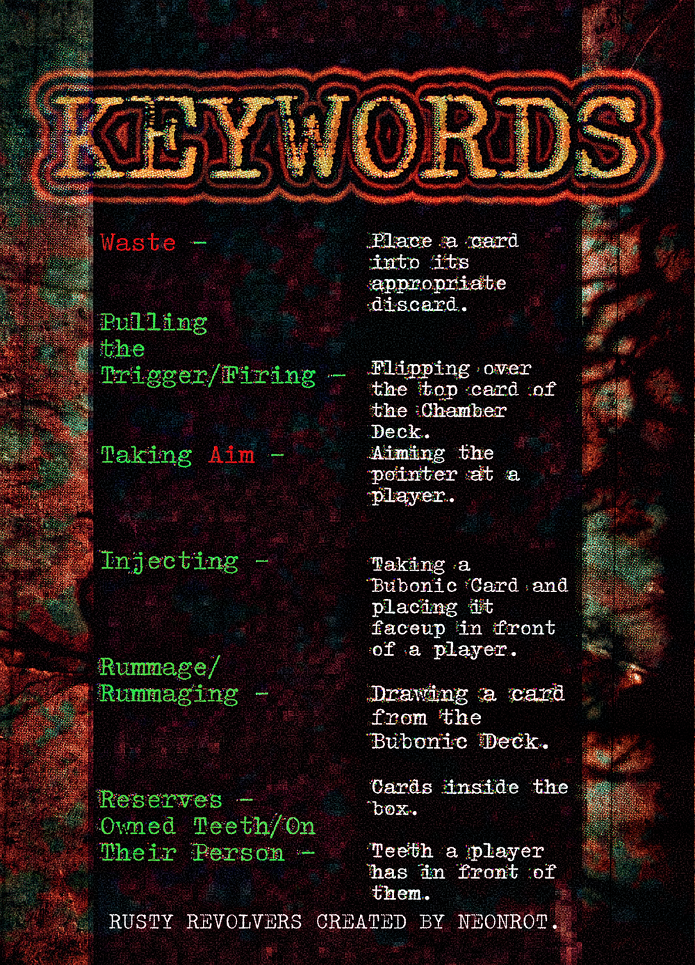Rusty Revolvers is a game of wretched chance. A card game where players take aim with their revolver, but not before injecting their opponent with something rotten and bubbling.